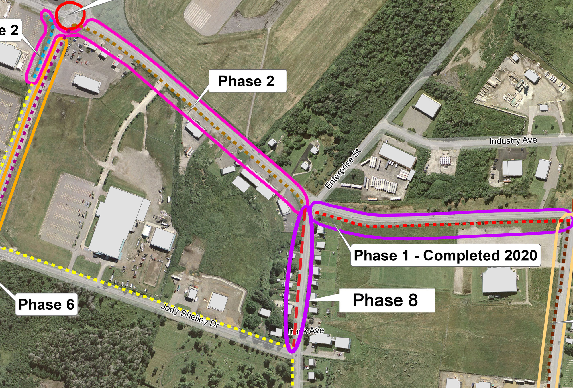 Phase 8 involves adding a connecting trail on Parade Street, between Haley Road and Jody Shelley Drive. This phase was completed in 2023.