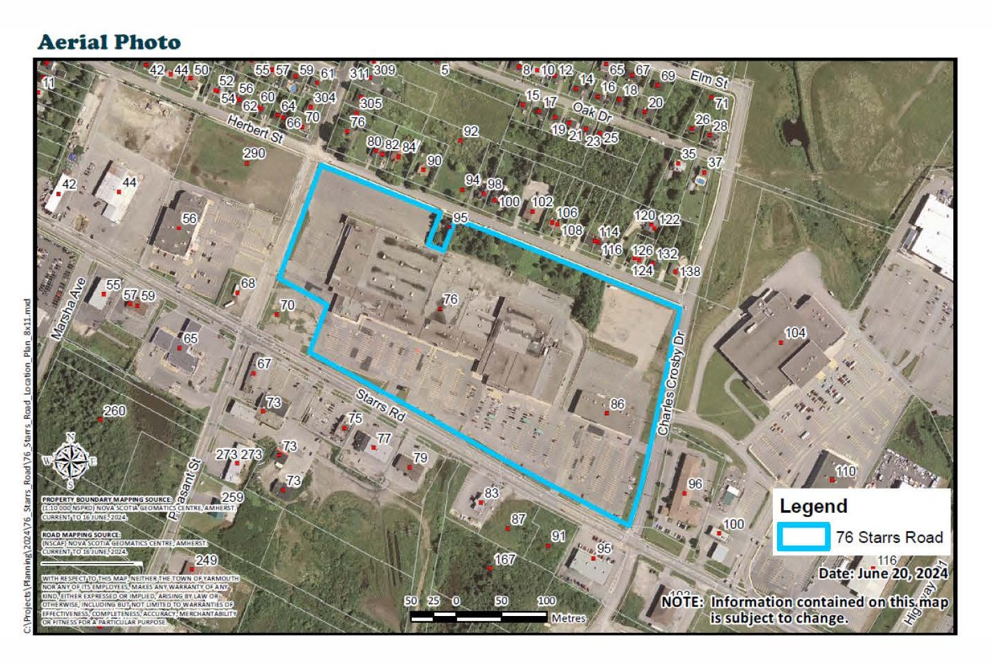 The Town of Yarmouth has received a planning application from the owner to enter into a Development Agreement to permit medical clinic and office uses (up to 20,000sf in size - combined) at 76 Starrs Road (PID# 90219452).